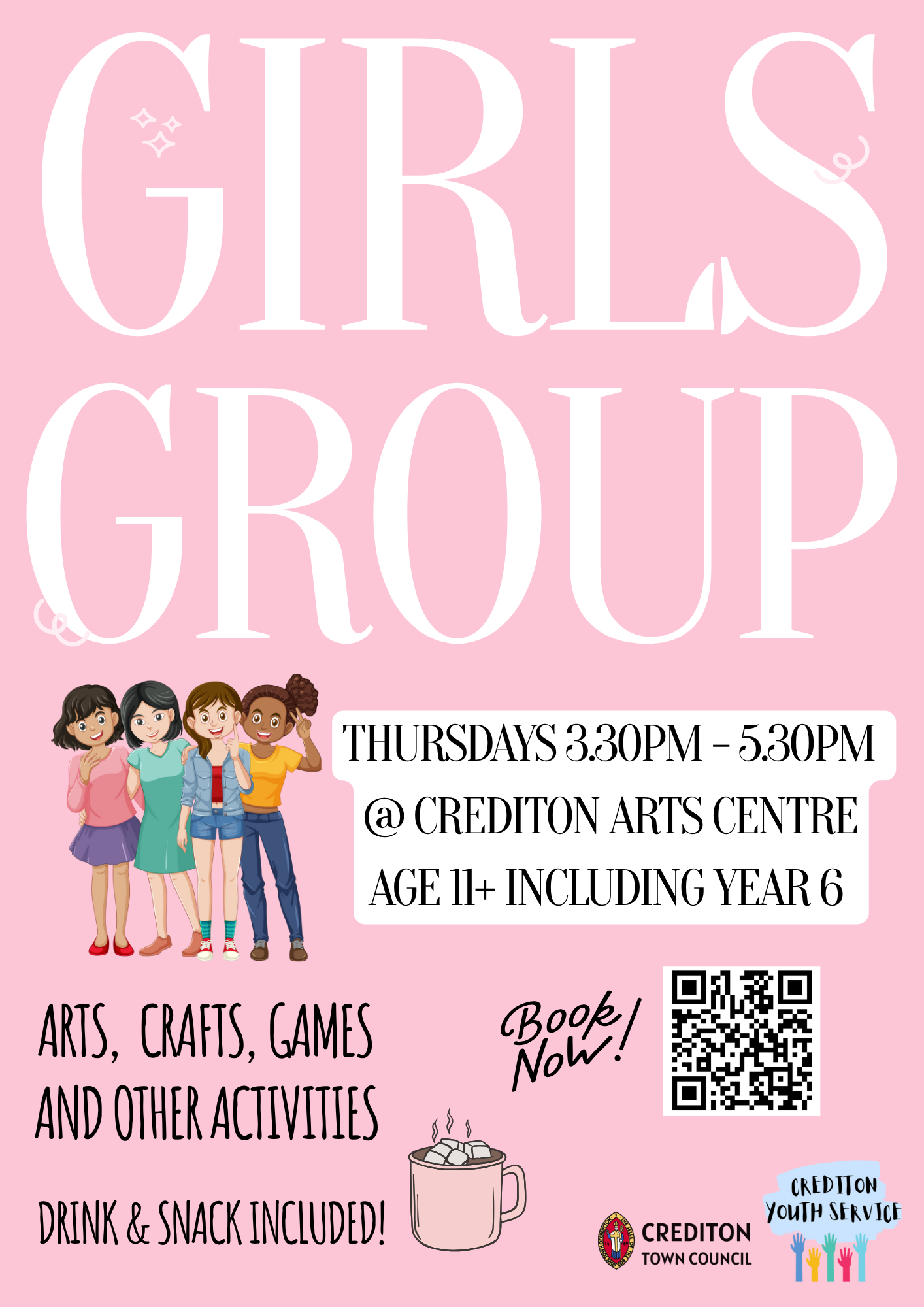 Girls Group will meet after school on Thursdays from 3.30 to 5.30 pm. All welcome - age 11+ including year 6. We'll be doing arts, crafts, games, and other activities. All materials included. Session includes drinks and snack on arrival (usually hot chocolate, or squash, fruit, and a biscuit).